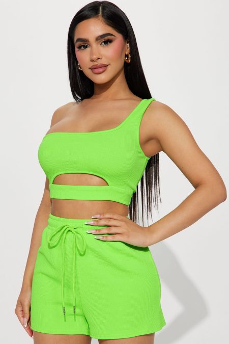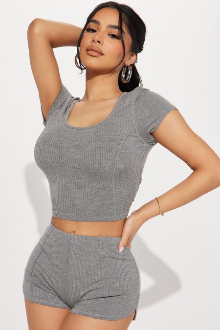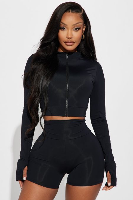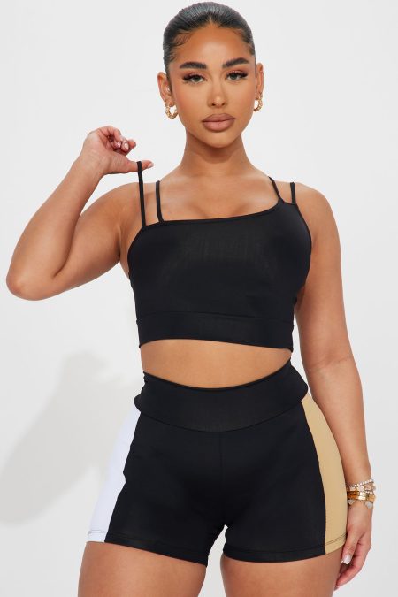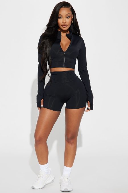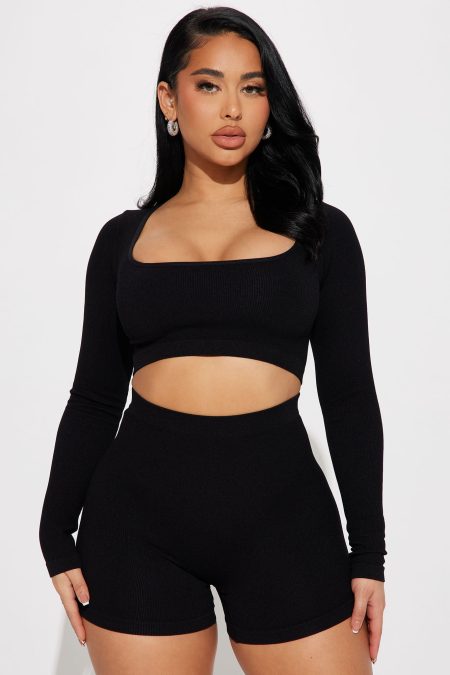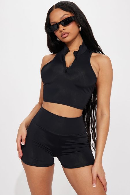 Available In Black. 2 Piece Short Set Crop Top Sle…