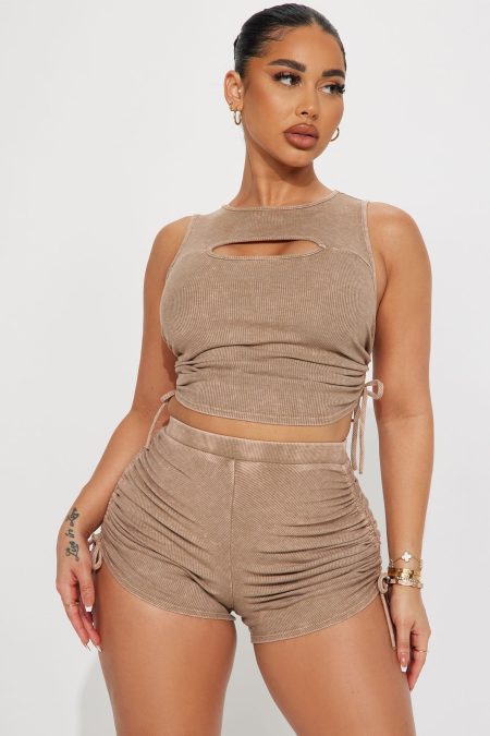 Available In Mocha. Mineral Wash Ribbed Short Set …