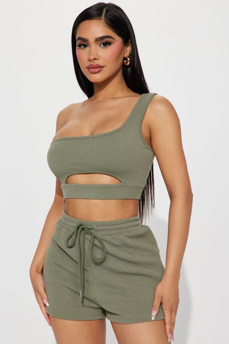 Available In Black And Olive. 2 Piece Short Set Ho…